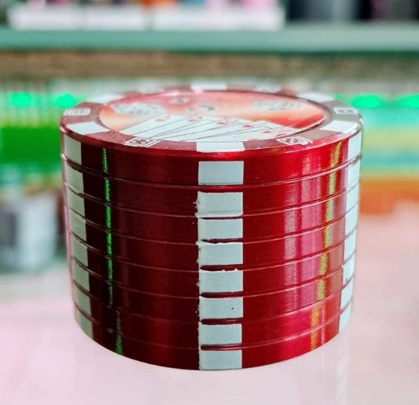 Picador metálico de tres partes con diseño Poker. Resistente y funcional, ofrece un molido parejo y cómodo con un estilo original y llamativo.